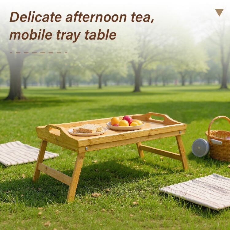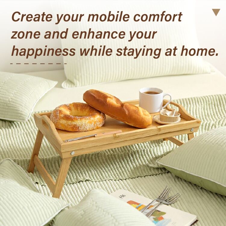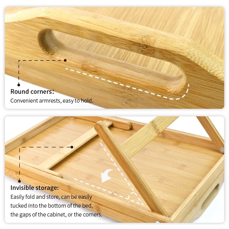 WDF anpassbares Holzfrühstückstablett Es ist nicht nur ein Tablett, es ist sowohl funktional als auch stilvoll. Nicht nur umweltfreundlich, das hochwertige Bambus macht es überraschend langlebig. Es ist dank seines faltbaren Designs sehr tragbar, sodass Sie es leicht aus dem Weg räumen oder überall hin mitnehmen können, sei es, um Frühstück im Bett zu servieren oder Snacks während einer Zusammenkunft zu servieren. Das Holzgeschriebene ist warm und natürlich und trägt zur rustikalen Dekoration jedes Hauses bei. Dies ist ein vollständig anpassbares Stück, das an Ihre Bedürfnisse angepasst werden kann.