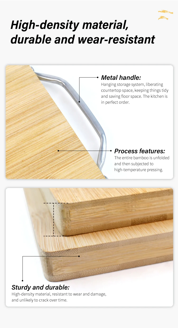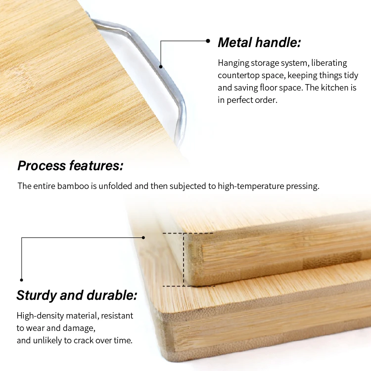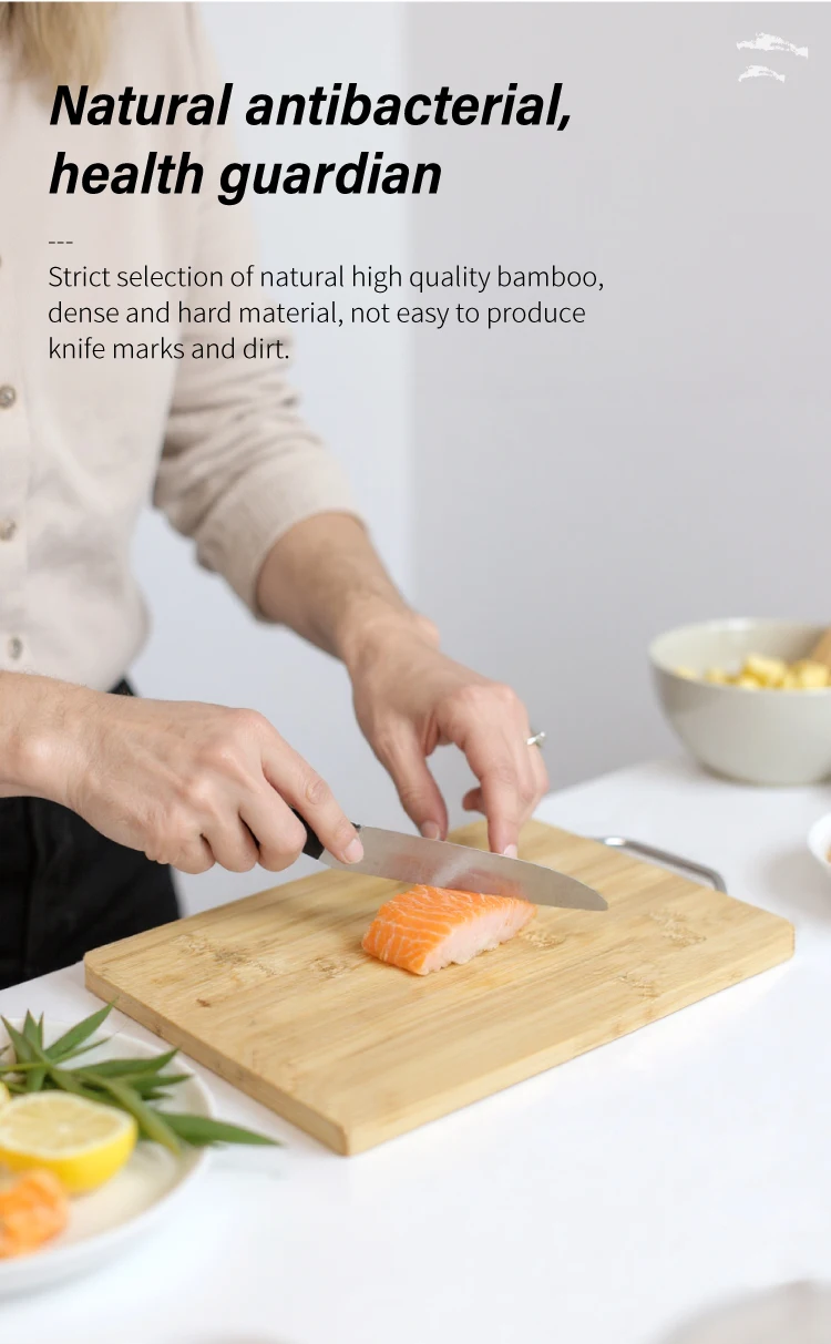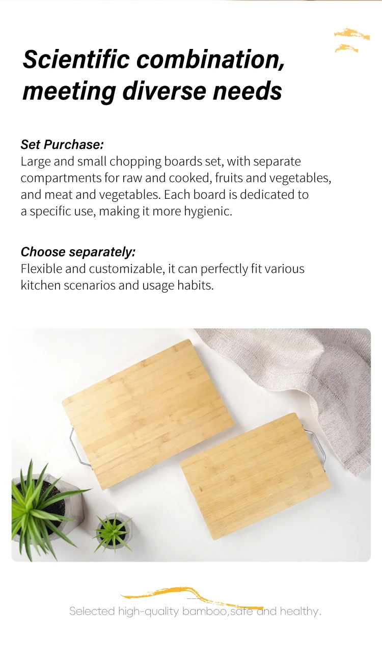 La cucina moderna richiede strumenti versatili, sostenibili e esteticamente piacevoli che migliorino sia la funzionalità che l'estetica. Il nostro set più venduto in fabbrica: 2 pezzi di taglieri personalizzati in bambù organico, 2 dimensioni assortite di taglieri in legno di bambù rappresenta la perfetta fusione tra consapevolezza ambientale ed eccellenza culinaria. Progettato per soddisfare le esigenze in continua evoluzione dei consumatori attenti in tutto il mondo, questo pregiato bambù set di taglieri offre un'eccezionale durata, proprietà naturali antibatteriche ed un'elegante presentazione che arricchisce qualsiasi ambiente cucina. Con la domanda globale di accessori da cucina ecologici in costante aumento, questa collezione di taglieri in bambù attentamente progettata colloca rivenditori e distributori alla guida delle tendenze nel settore degli utensili da cucina sostenibili.