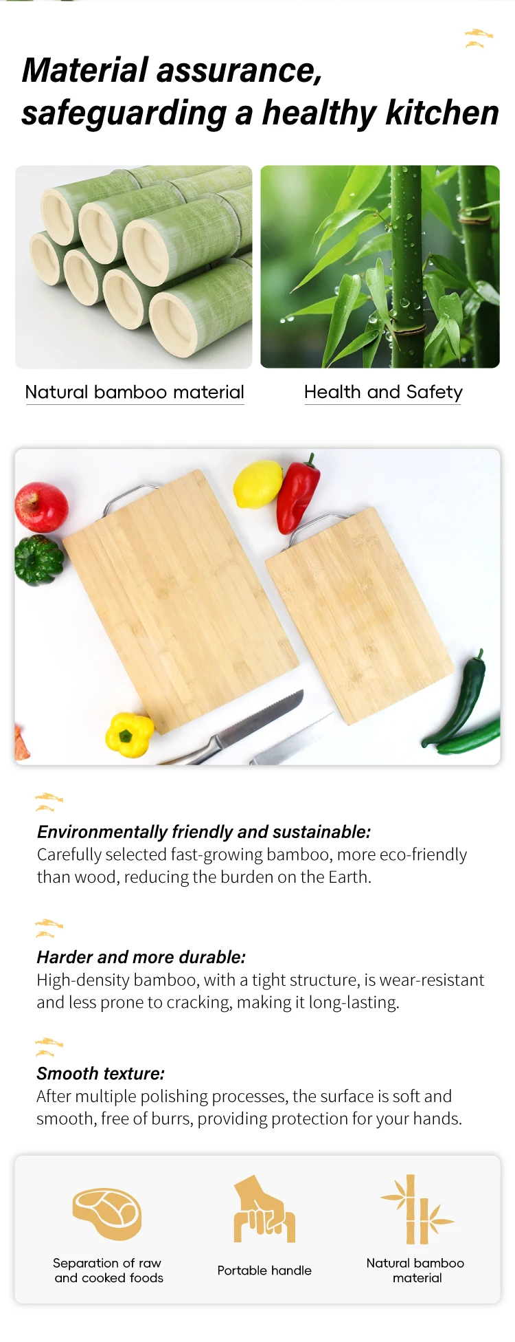 Il nostro set da fabbrica più venduto, composto da 2 pezzi personalizzati in bambù biologico, include 2 taglieri in legno di bambù di dimensioni assortite e mostra una fattura superiore grazie a materiali in bambù biologico accuratamente selezionati, provenienti da foreste gestite in modo sostenibile. Ogni tagliere del set completo è sottoposto a un processo accurato per garantire un allineamento ottimale delle venature, creando superfici resistenti ai segni dei coltelli e capaci di mantenere la loro bellezza naturale anche dopo un uso prolungato. La struttura in legno di bambù offre un eccezionale rapporto resistenza-peso, rendendo questi taglieri allo stesso tempo robusti per preparazioni alimentari intense e leggeri per una comoda manipolazione e conservazione.