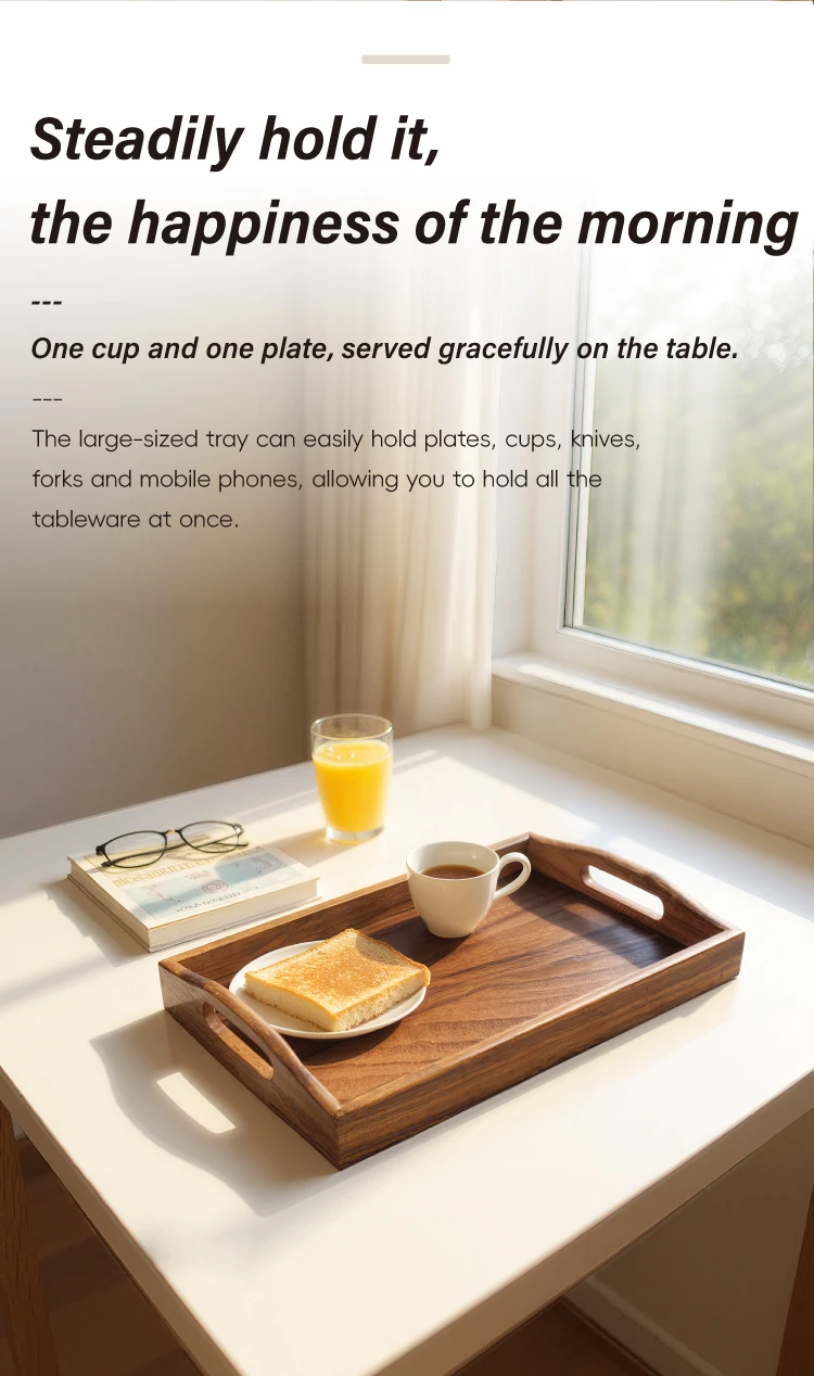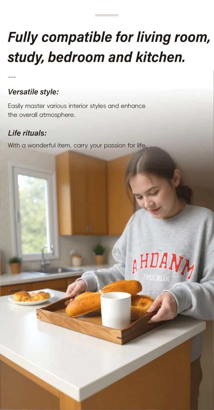 Il set di vassoi da cucina unici WDF, vassoi in legno per alimenti, vassoio portavivande extra large in legno di acacia con maniglie, mostra la bellezza naturale e le proprietà eccezionali del vero legno duro di acacia. Questa collezione premium di vassoi unisce tecniche tradizionali di lavorazione del legno a un design contemporaneo, creando pezzi d'arte funzionali adatti a molteplici utilizzi in diverse applicazioni. Ogni vassoio presenta bordi attentamente sagomati e maniglie ergonomiche che garantiscono una presa sicura e un comfort ottimale durante il servizio.