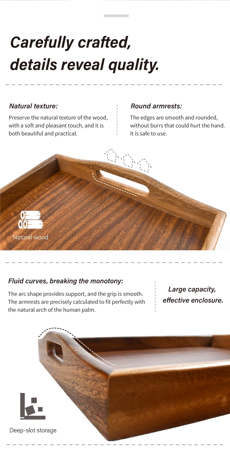 Con la crescente domanda globale di stoviglie ecologiche, questi vassoi da portata in legno artigianali rappresentano un'alternativa ideale ai materiali sintetici. Le venature naturali e le tonalità calde del legno di acacia creano un aspetto accattivante che valorizza ogni presentazione culinaria, mentre la pratica impugnatura integrata garantisce un trasporto agevole e un servizio elegante. Destinati a ristoranti boutique, hotel di lusso o canali retail premium, questi pezzi da portata artigianali offrono la raffinatezza e la durata che i consumatori moderni si aspettano.