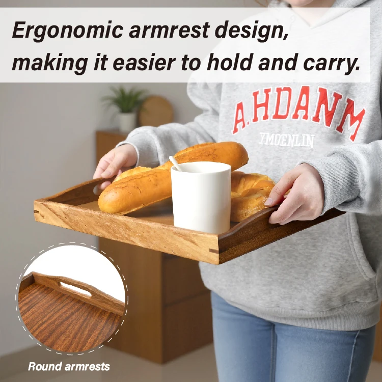 Gli ambienti di vendita al dettaglio traggono vantaggio dall'utilizzo di questi vassoi da servizio come piattaforme di esposizione per prodotti alimentari gourmet, artigianato artigianale o merci di alta qualità che beneficiano della presentazione in legno naturale. L'aspetto accogliente e accogliente del legno di acacia crea un legame emotivo con i clienti che aumenta il valore percepito degli oggetti esposti. I rivenditori di articoli per la casa trovano questi pezzi attraenti per i consumatori che cercano alternative autentiche e sostenibili agli accessori di servizio prodotti in serie.