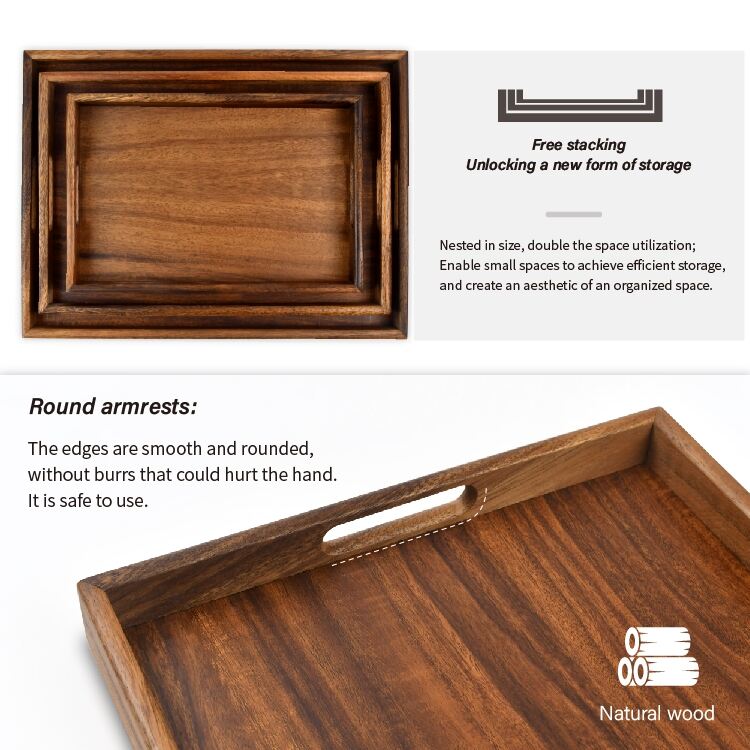 Le opzioni di dimensioni personalizzate soddisfano requisiti applicativi specifici mantenendo gli elementi di design essenziali che contraddistinguono questi straordinari vassoi. Trattamenti finitori specializzati possono modificare il tono naturale del legno per armonizzarsi con gli arredi esistenti o con le palette cromatiche aziendali. Le diverse profili dell'orlo consentono ai clienti di definire dettagli estetici specifici, in linea con la loro visione progettuale o con esigenze funzionali.